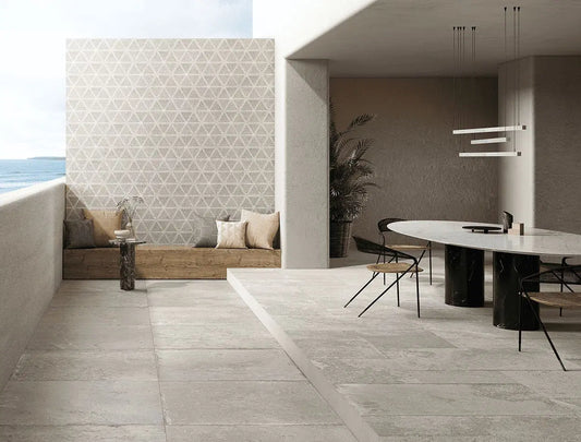 Stone effect tiles mimic the look of natural stone, with the durability and easy maintenance of ceramic. They are available in various textures and colors, offering a cost-effective alternative to real stone.